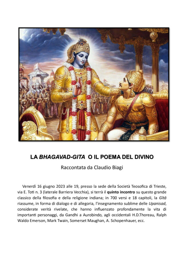 l’intervento del nostro Presidente Nazionale: ANTONIO GIRARDI, il 10 novembre, che tratterà “Il Cristianesimo Esoterico” di A. Besant.